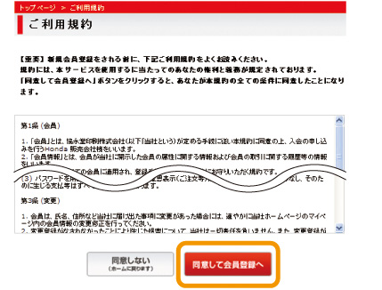 【同意して会員登録へ】ボタンを押します。