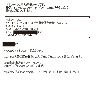 会員登録が完了した場合は、登録メールアドレス宛に登録完了メールを送信します